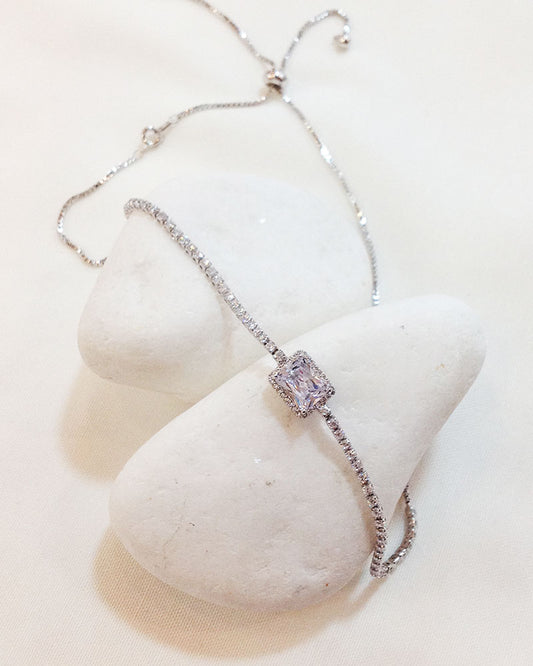 CHUNKY SILVER CHAIN NECKLACE IN WHITE CRYSTALS