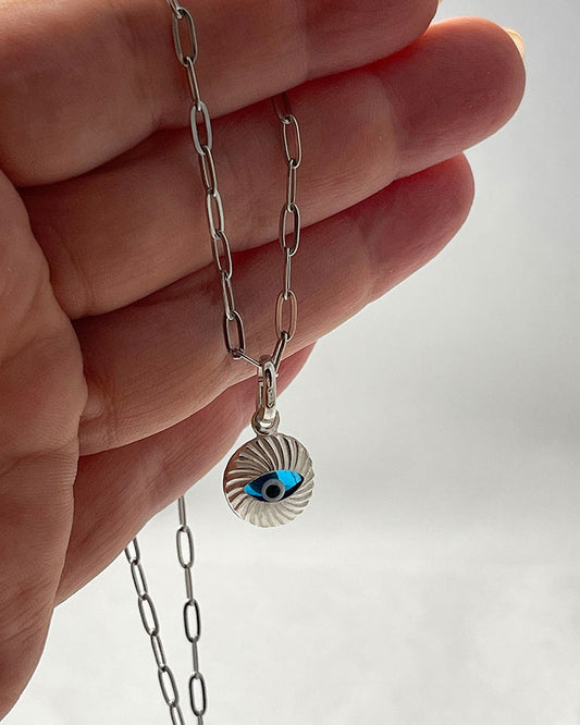 EVIL EYE PEARL PAPERCLIP CHAIN NECKLACE