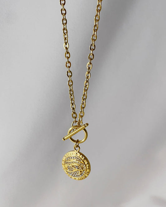 LARGE CROSS CRYSTAL PENDANT NECKLACE IN GOLD