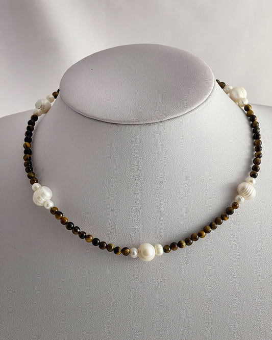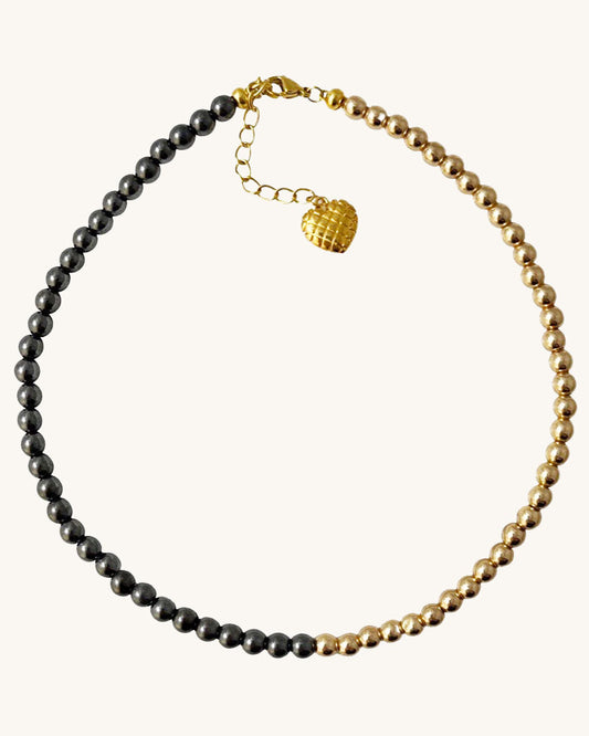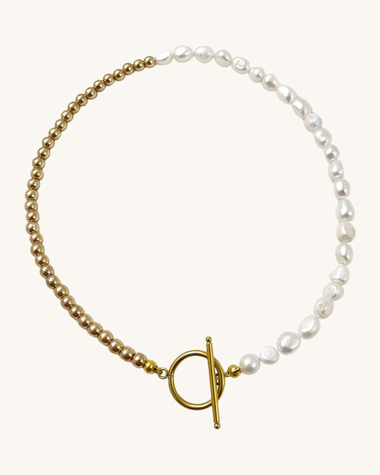 AMELIA HALF PEARL HALF HEMATITE TOGGLE NECKLACE