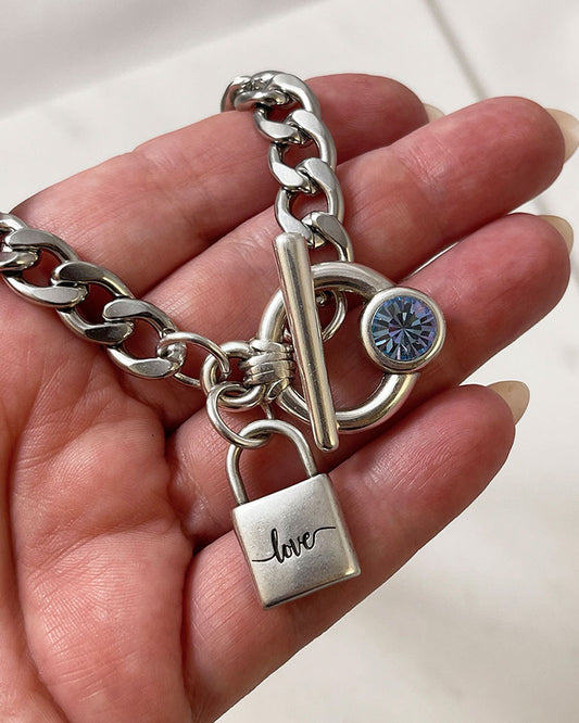 CHUNKY SILVER CHAIN NECKLACE IN WHITE CRYSTALS