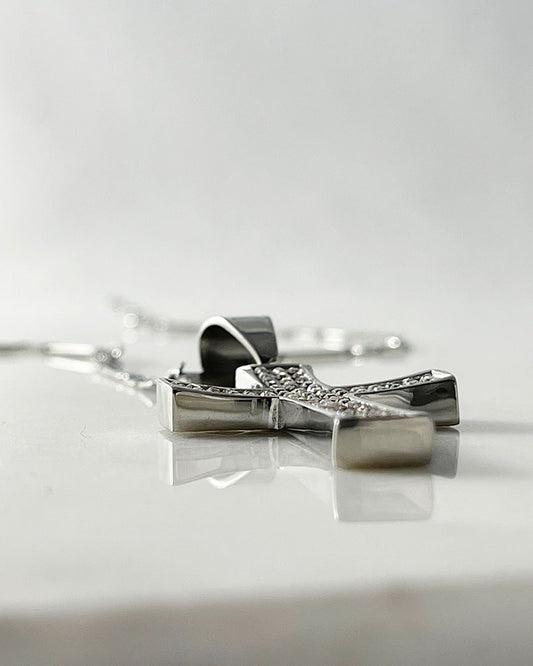 CRYSTAL CROSS PENDANT NECKLACE IN SILVER
