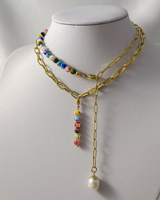 Sold outMURANO BEADED PEARL LARIAT NECKLACE