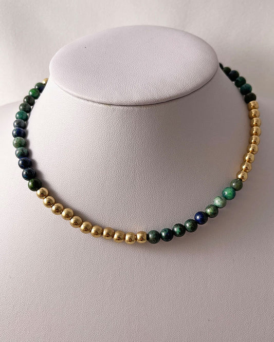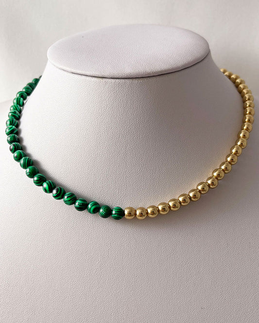 GREEN MALACHITE NECKLACE IN GOLD HEMATITE