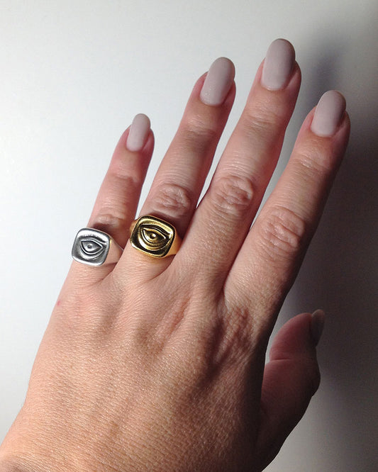 EVIL EYE GOLD RING IN BLACK & WHITE