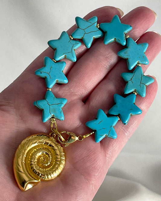 NAUTILUS CHARM TURQUOISE BEADED BRACELET
