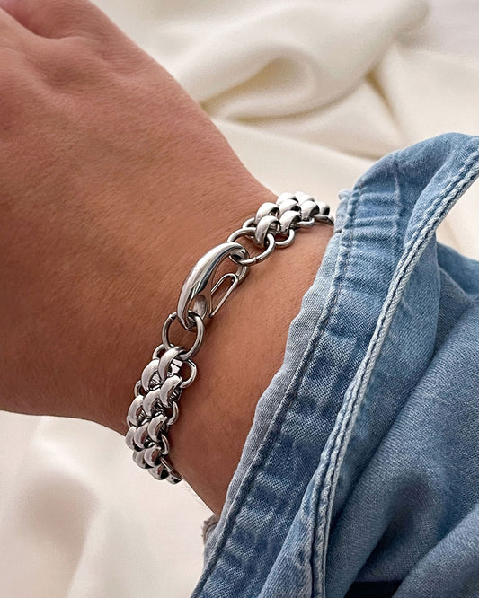PALMER WOVEN WIDE CHAIN BRACELET - SILVER