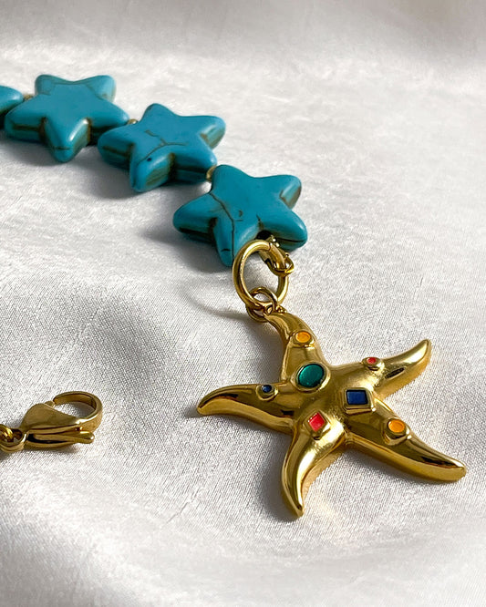 STARFISH CHARM TURQUOISE BEADED BRACELET