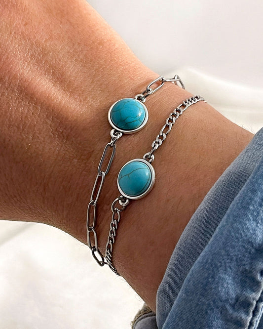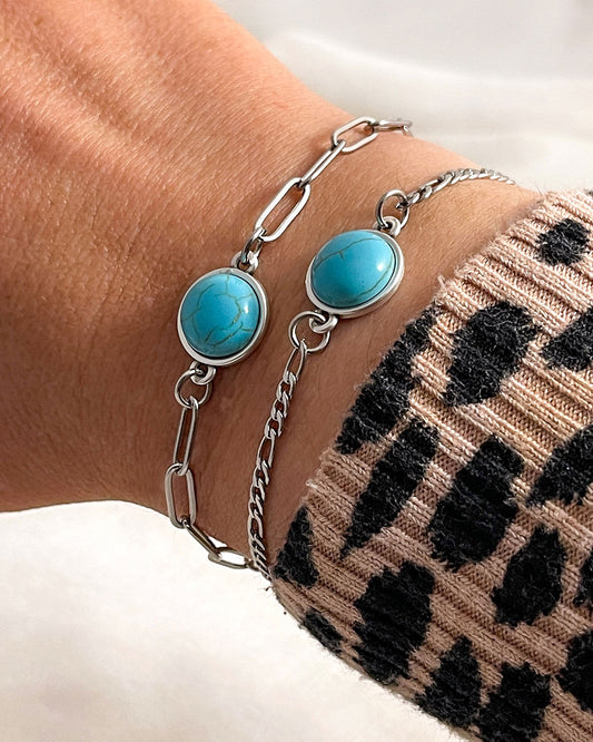 TURQUOISE GEMSTONE FIGARO CHAIN BRACELET