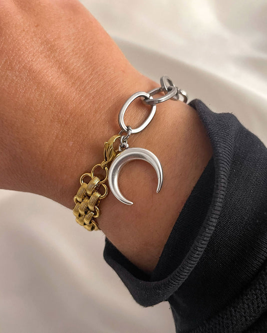 TWO TONE MOON CHARM BRACELET