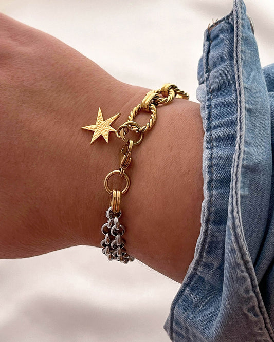 TWO TONE STAR CHARM BRACELET
