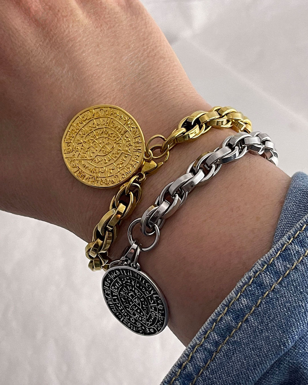 CHUNKY CHAIN BRACELET WITH PHAISTOS DISC - SILVER
