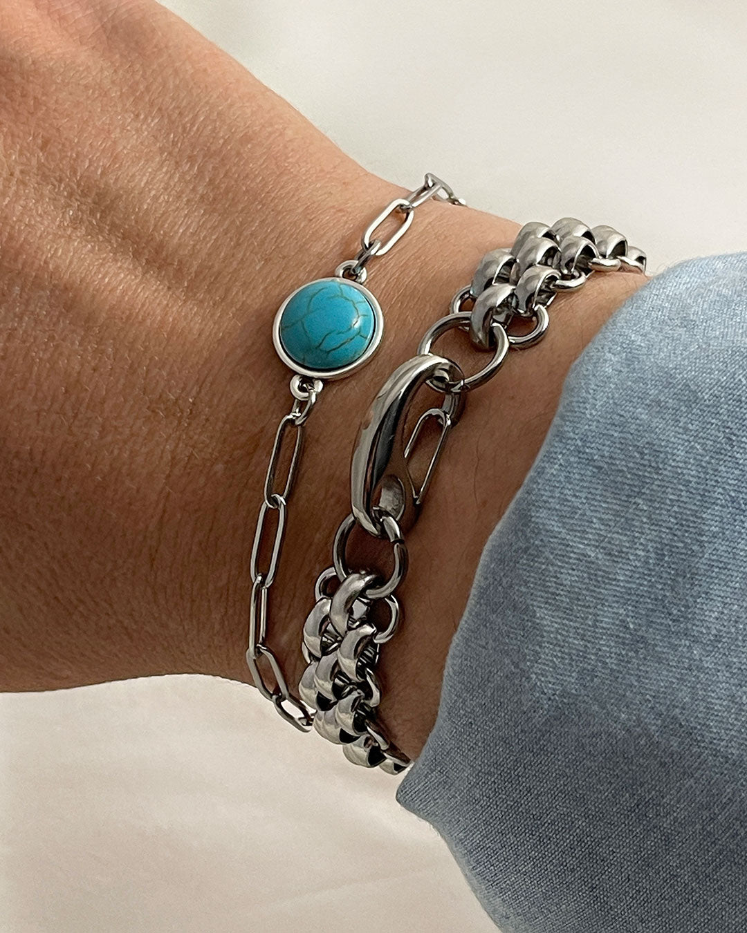 TURQUOISE GEMSTONE PAPERCLIP CHAIN BRACELET
